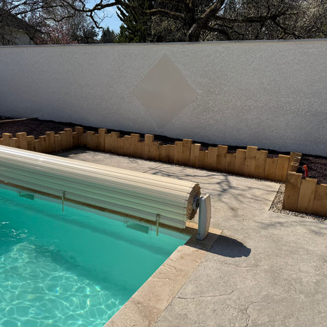 Béton Décoratif Bois Vintage Cérusé gris autour d'une piscine avec plage immergée modèle B